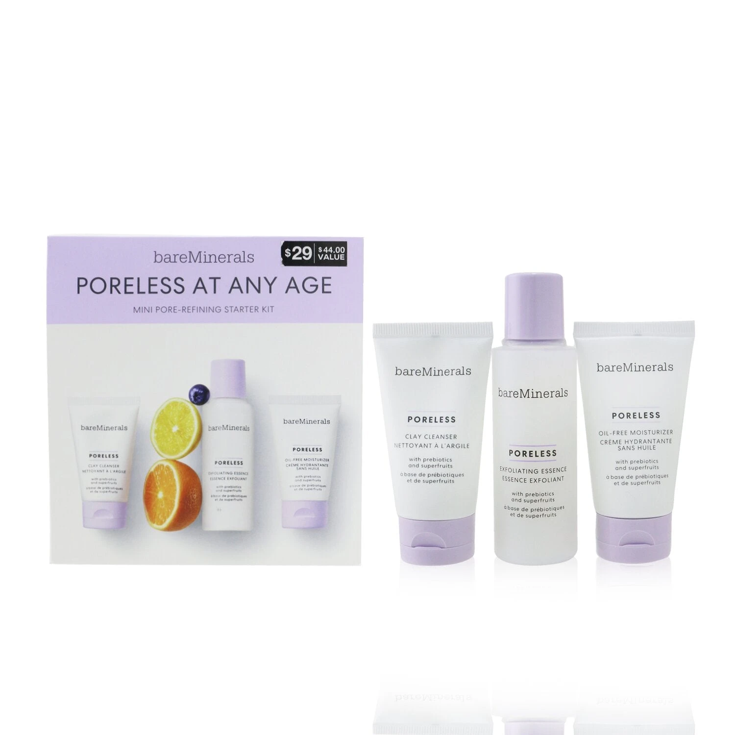 BareMinerals Poreless At Any Age Starter Kit: Clay Cleanser 30ml+ Exfoliating Essence 50ml+ Oil-Free Moisturizer 30ml 3pcs