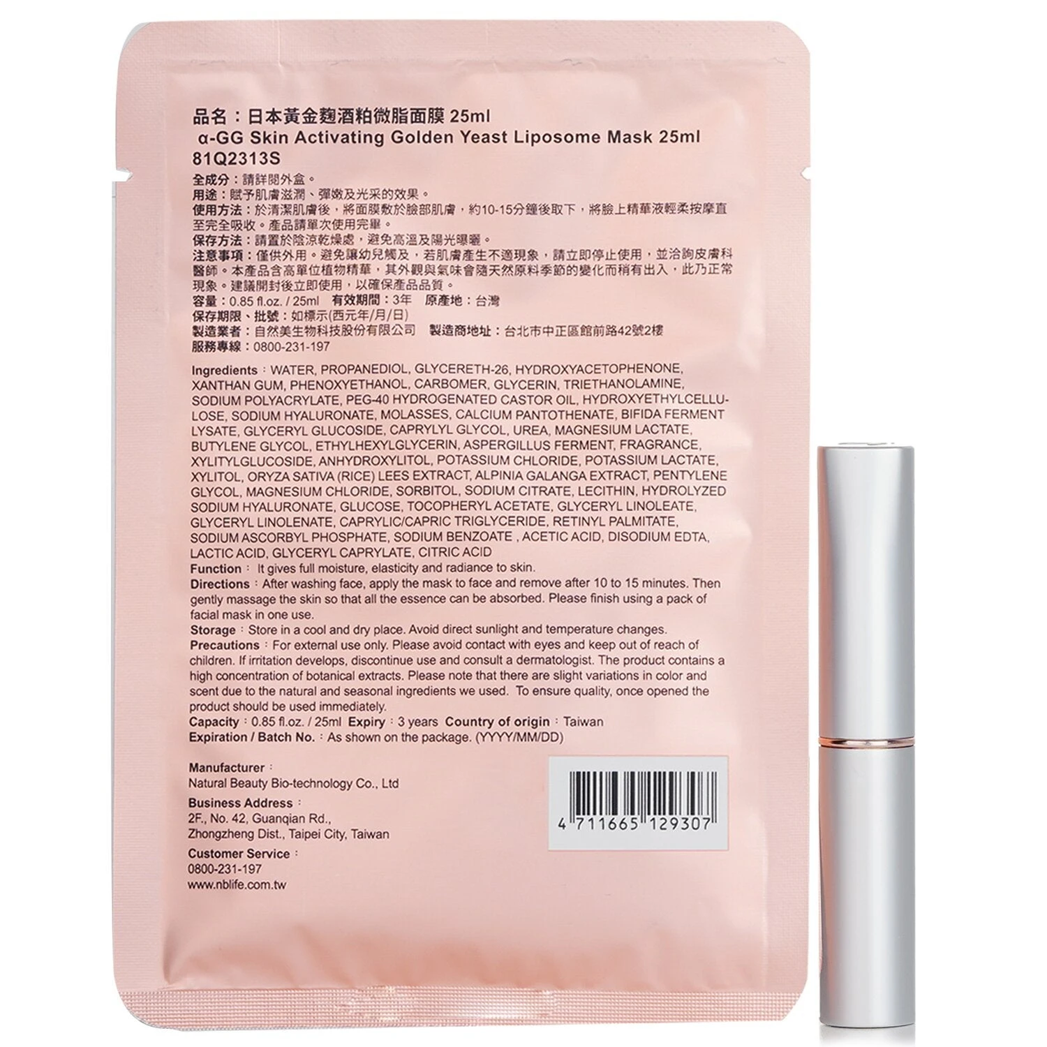 Sets 1x Natural Beauty BIO UP a-GG Skin Activating Golden Yeast Liposome Mask – 5x25ml/0.84oz 1x Jane Iredale Just Kissed Lip & Cheek Stain – Forever Pink – 3g/0.1oz