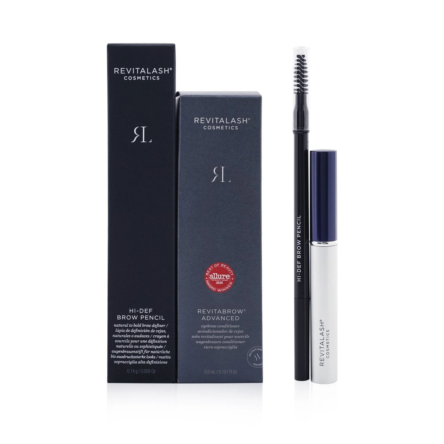 1x RevitaBrow Advanced Eyebrow Conditioner 3ml/0.101oz 1x Hi-Def Brow Pencil 0.14g/0.005oz (Warm Brown) RevitaBrow Advanced Eyebrow Conditioner: Helps revitalize & re-shape eye brows Formulated with peptides & botanicals for reinforcing, conditioning & nourishing Reveals thicker, fuller & healthier eye brows Hi-Def Brow Pencil: A multi-functional, water-resistant eyebrow pencil Blendable, non-tacky formula effortlessly mimics brow hair for a fresh, natural look Rich, buildable texture can be layered for a full, bold brow look Helps fill in sparse or over-tweezed eyebrows with customizable definition Transforms shapeless brows in just a few strokes that lasts all day Features a fine-tip applicator to create natural hair-like strokes Dermatologist reviewed & clinically tested Hypoallergenic & non-irritating Vegan, cruelty-free & gluten-free Free of oil, parabens, phthalates & fragrance Ideal both for personal use & as a gift